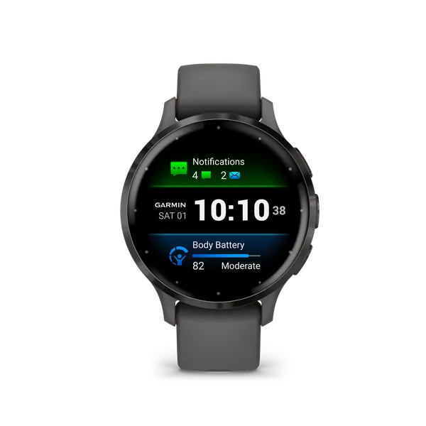 Know the real you with the Venu 3 series smartwatches, the ultimate on-wrist coach designed to support your goals. With up to 14 days of battery life, these GPS smartwatches are purpose-built with advanced health and fitness features to help you better understand your body. During the day, switch up your activities with animated workouts and more than 30 built-in sports apps - including for active wheelchair users - plus advanced training featuresto keep you going strong. With its built-in speaker and microphone, the Venu 3 smartwatch makes it easy to make and take calls right from your wrist when paired to your smartphone - and even reply to texts by using your phone's voice assistant1. Plus, enjoy connectivity features such as music storage, Garmin Pay contactless payments (with a supported country and payment network) and more.