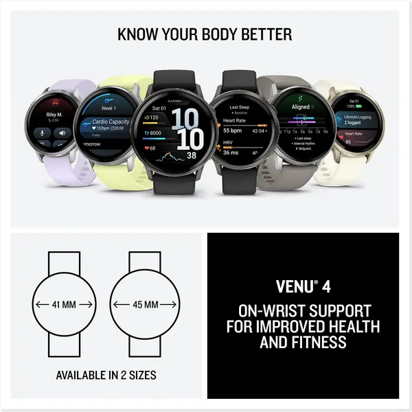 Purpose-built with advanced health and fitness features, the Venu 4 GPS smartwatch is your on-wrist support to help you better understand your body and make healthier decisions.