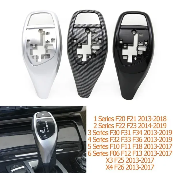 COMPATIBLE WITH BMW 1 SERIES F20 F21 2014-2018 2 SERIES F22 F23 2014-2018 3 SERIES F30 F31 F34 F35 2014-2018 4 SERIES F32 F33 F36 2014-2018 5 SERIES F10 F11 F18 2013-2017 5 SERIES GT F07 2013-2017 7 SERIES F01 F02 2009-2015 X3 F25 2013-2016 X4 F26 2013-2016 GEAR SHIFT KNOB TRIM COVER