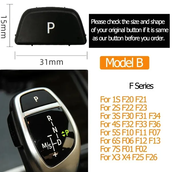 Gear Shift Lever Auto Parking Switch Letter P Button Cover Model B Black CC-8625 Compatible With Bmw 1 2 3 4 5 6 7 Series F20 F30 F34 F10 F07 F06 F12 F01 F02 X3 X4 F25 F26 X5 X6 F15 F16