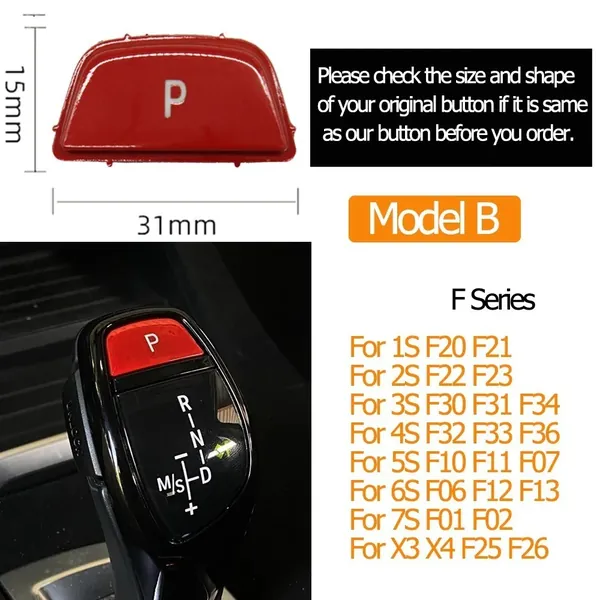 Gear Shift Lever Auto Parking Switch Letter P Button Cover Model B Red CC-8624 Compatible With Bmw 1 2 3 4 5 6 7 Series F20 F30 F34 F10 F07 F06 F12 F01 F02 X3 X4 F25 F26 X5 X6 F15 F16