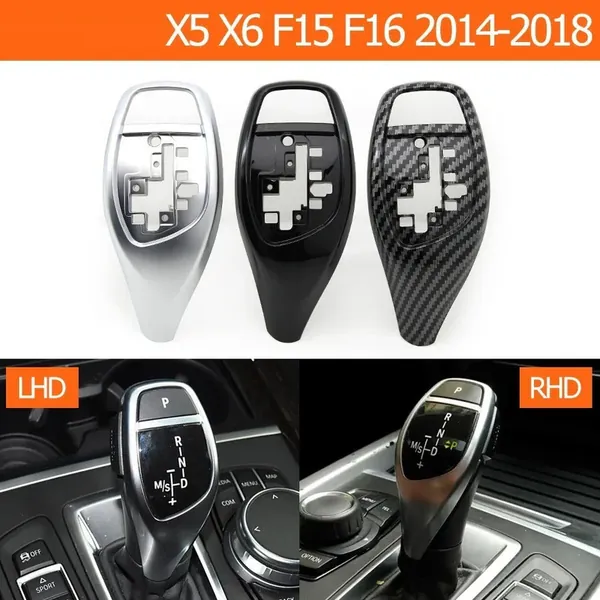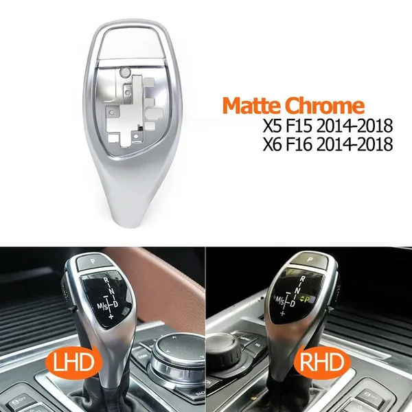 COMPATIBLE WITH BMW X5 X6 SERIES F15 F16 2014-2018 CAR GEAR SHIFTER LEAVER KNOB SHIFT LEVER COVER REPLACEMENT 61319346827-B-1 MODEL B SILVER CHROME
