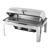 Specifications Roll top lid 1/1 GN size chafing dish Supplied with water pan, food pan, lid and 2 chafing fuel holders Smooth, top quality stainless steel construction Large size 9 ltr capacity 1/1 GN full size Twin fuel holders / burners for even heat distribution Roll back lid Very easy to clean Beautiful finish for top quality presentation of food Ideal for holding cooked food and all buffet services Brand new and boxed Easy to transport Dimensions: 660mm W x 490mm D x 460mm H