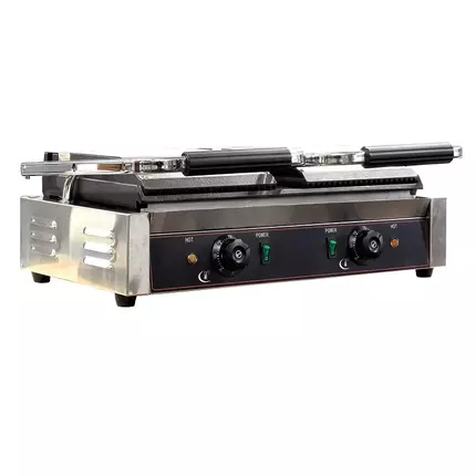 Features: Ideal for grilling or toasting a variety of foods such as paninis, burgers etc.. Fitted with dual controls allows you to control each side separately for maximum cooking control.. Drip tray included for easy disposal of waste.. Power - 2 x 1.8kw.