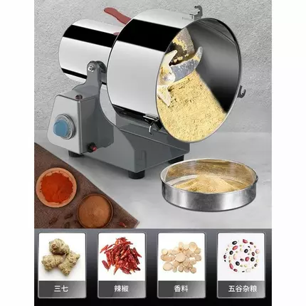 Features: Large Capacity Dry Grinder:8.07'' × 5.51'' large capacity grinding tank, single grinding powder amount up to 2500g, meet your daily kitchen or commercial needs, the material recommended to grind one time must cover the long blade in the middle and no more than 2/3 of the tank, 1/2 of the tank is the best. Superfine Grain Mill:32000 r/min high speed only need 30-60s to be ground into 60-300 mesh superfine power. You can adjust the grinding time according to the hardness of the material, so as to achieve the ideal grinding fineness, ultra-fine grinding effect can usually be achieved in 2-3 minutes. The grinding material must be dry, be able to achieve the best grinding effect. 270° Swing Type Safety Design:The Grinder uses 270° swing type design making it more compliant with ergonomics, not only improves grinding effects but also makes powder pouring more convenient. Suggest starting the grain grinder after fully tightening the lid, which is safer to use, two induction switches in the buckles on both sides, and equipped with current overload and motor over-temperature protection, make the use process safer. Use Safety Tips:The working principle is to pulverize the material into powder through the high-speed rotation of the blades, the whole process is carried out in the closed grinding bin, which will generate heat and cause the machine to heat up. So It is normal for the grinding machine to be slightly heated. After the machine runs for 3-5 minutes, needs to rest for 5-10 minutes to avoid overheating of the motor. Wide Range Usage:The grinder can deal with various dried materials, including grains (coffee beans, soy, dry corn, barley, rice, wheat, oats, rye, peas, mung beans), spices (star anise, fennel, pepper, cinnamon, rosemary). Suitable for occasions such as homes, shops, restaurants kitchens, meet all your daily needs.