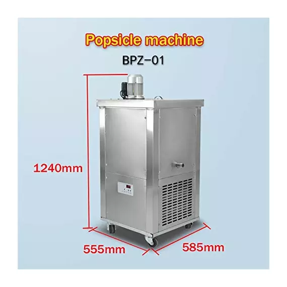 Features Kolice Commercial Single ice Mold Set Popsicle Machine,ice pop Machine,ice Lolly Machine,ice Lollipop Making Machine Product Name: Single Mold Popsicle Machine. Main Power: 220V 50Hz, 1300W Material of whole machine: food grade stainless steel. Dimensions: 555x585x1240mm, N.W.: 80kg,G.W.: 105kg. Plywood case packing. Production capacity: 120-180pcs/ hour. The lowest temperature:-30C, The best working temperature:-18C to -25C, 15-20 mins per shift. Cooling: Air , Branded Compressor, refrigerant R410A already filled before delivery. Include 1 ice mold set (40 pcs popsicle stick/ mold set), ice mold delivered randomly if no requires. Additional 1 funnel provided. Widely be used in bars, cafes, milk-tea stores, restaurants, hotels, bakeries, ice cream store and so on. Specifications: Brand :Kolice Model Number: BPZ-01-N Product Dimensions : 17.5 x 22.4 x 48 inches (44.5 x 56.9 x 121.9 cm) Power / Wattage: 1300 watts Material: Stainless Steel Special Features: ice lolly maker, ice lollipop maker, popsicle machine ice popsicle making machine, ice lollipop machine, ice popsicle maker Item Weight : 117 kg