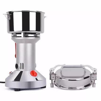 Features: Dry Food Grinder Machine can grind dry materials, such as spice, chili, pepper, herb,pearl, nut, peanut,wheat,corn, rice, grain, and so on.The material is more hard, the powder will be more fine. Electric grain grinder motor speed:28000(r/min).Capacity: 250g,Motor Power:1500W,Operation time:5mins.Interval time:10mins,Crushed Level: superfine mill; Principle: high-speed grinder. Fitness: 70-300mesh. Widely used for grinding:Whole Grains (soybeans, black rice, corn, etc.);Chinese medicine (ginseng, astragalus etc.); Super hard material:pearl,Polygonum multiflorum and other hard Chinese herbal medicines;Oil materials (sesame, peanut, etc.); With fiber materials(Ganoderma lucidum). The grain crusher made of food-grade stainless steel, tough and durable, no processing pollution,Metal motor blade: wear resistance, ensure the stability and safety of the motor for a long time. When open the cover, the crusher will automatically stop, making the operation safer and more compliance with ergonomics. With overload protection function, when grain mill is in an overloaded/overheat state, the overload protector will pop up automatically to stop grinding for protecting the motor. Specifications: Capacity: 250g Voltage: 110V/220V Power: 1500W Fineness: 70-300 mesh Rotation speed: 2800R/Min Working time: 0-5 min G.W: 4.82 kgs