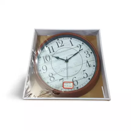- Brown Outer Rim: The clock's distinctive feature is its brown outer rim, adding warmth and a touch of sophistication to the overall design. The brown color complements various color schemes and adds a stylish contrast.