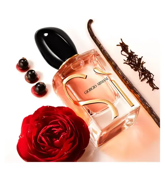 Discover the NEW SÌ Eau de Parfum Intense, an unforgettable sensory experience that invites you to embrace the infinite possibilities of life. True to the iconic signature of SÌ, a sensual feminine fragrance which blends fresh blackcurrant nectar with a floral rose heart. Empowered by the contrast of sweet vanilla and smoky black tea for a new deeper intensity. Encapsulated in a stylish new bottle adorned by the golden SÌ logo, embossed in the glass. It is a powerful statement to invite each woman to say SÌ, and to embrace every aspect of herself.