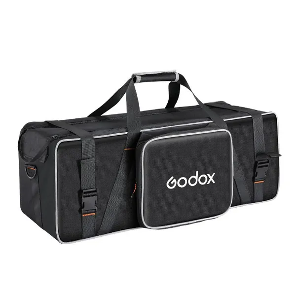 Store, transport, and protect photo and personal gear under 72cm long with the black Godox CB-05 Carrying Bag from Godox. On the side of the bag is a zippered accessory pocket. The bag features zipper closure, dual, connecting top strap handles, an adjustable shoulder strap, dual compression straps, and nylon construction.