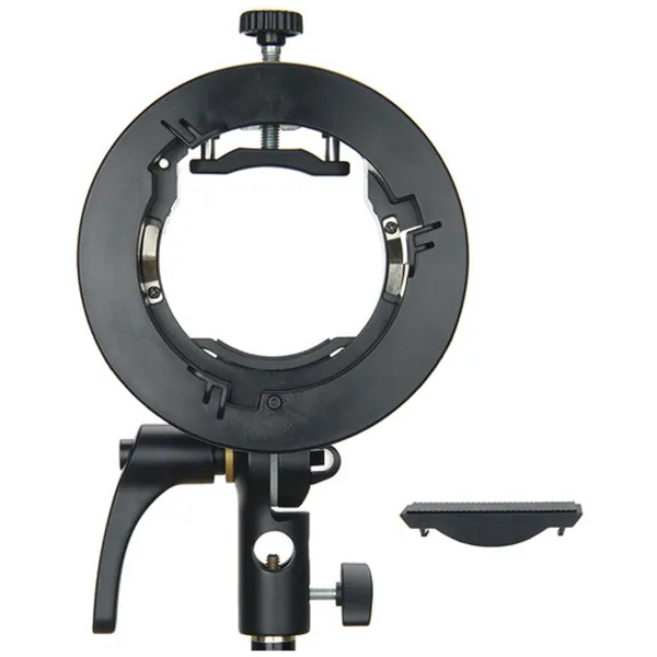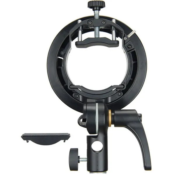 Adjustable to fit most speedlites, the Godox S2 Speedlite Bracket for Bowens is more compact and portable than the original S-type bracket and lets you maximize the potential of your on-camera flash while allowing you to use Bowens accessories. The bracket supports your flash either vertically or horizontally, employing non-scratching, light pressure rather than touch-fasteners or tape. Light modifiers such as reflectors, softboxes, and snoots mount to the front of the bracket as they would on a Bowens flash head. The bracket tilts nearly 180 degrees and has a 5/8" receiver for stand mounting.