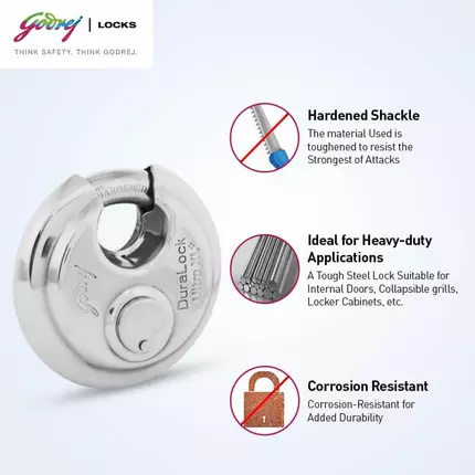 The best solution for locking shutters. The unique construction makes the lock crowbar resistant, providing you added security. This lock comes with advanced Ultra XL+ technology. The colour button on key aids in differentiating key of one user from the other. Bigger keyhead of Ultra XL+ key provides better grip, making it very easy to operate the lock. Duralock Ultra XL+ 90mm padlock by Godrej is one of its kind. Designed using superior quality Stainless steel 304, this lock comes with advanced Ultra XL+ Advanced 14 Pins technology which has multi-row 14 pin mechanism making key duplication extremely difficult. The unique enclosed construction makes the lock crowbar resistant, providing you added safety. The bigger keyhead of Ultra XL+ key provides better grip, making it very easy to operate the lock. The colour button on the key in differentiating the key of one user from the other. The durability of the product is remarkable. It ensures you get the best usage for a longer period. A stainless steel lock with 90mm hardened steel shackle for all your locking needs. Suitable for both indoor and outdoor use, you can lock shutters of warehouses and shops, Main door aldrops, Grill gates. Key features: SS weather cap - The SS weather cap prevents entry of dust and water. Bigger key head with colour buttons - For easy grip and smooth operation. Trivalent chrome plated shackle - Unlike the traditional hexavalent process, is highly corrosion-resistant. Rivetless construction - Makes the padlock very strong. Drill, hacksaw and force resistant, for added safety. Corrosion-resistant - Stainless steel body protects against rust & corrosion thus protecting your property for years. Includes: 1 Godrej lock with 3 keys. About the Brand - Godrej Locks has been protecting every home in India ever since 1897. We have products for all your needs. Padlocks, digital locks, furniture locks, baggage locks, door locks, safety solutions for home, institution and commercial needs. Design led innovation and technology has been the backbone of our products ensuring safety for consumers in India and across the globe. We at Godrej being the first choice of the people across India are the largest supplier of safety products for homes, housing societies, the banking industry and public institutions. Think safety, Think Godrej. Ultra XL+ Technology: Ultra XL+ Technology has multi-row 14 pin mechanism and provides 10 crore combinations making it very difficult to duplicate. A stainless steel lock with 90mm hardened steel shackle for all your locking needs. Suitable for both indoor and outdoor use, you can lock shutters of warehouses Duralock Ultra XL+ body is designed with Stainless steel 304 with superior finish that ensures rust-resistance. The 90mm shackle is made of hardened steel protects cutting and prevents rusting under normal atmospheric conditions & provides a long life to the lock. Features The best solution for locking shutters. The unique construction makes the lock crowbar resistant, providing you added security. This lock comes with advanced Ultra XL+ technology. The colour button on key aids in differentiating key of one user from the other. Bigger keyhead of Ultra XL+ key provides better grip, making it very easy to operate the lock. Uitra XL+ technology provides 10 Cr combinations making it very difficult to duplicate. Stainless Steel weather cap prevents entry of dust. Strong SS304 body which is highly corrosion resistant and Enclosed construction prevents lifting by crowbar. Hardened steel shackle provides resistance to hacksaw Cutting and Bigger key head for better grip for ease of usage. Specifications: Brand: Godrej Lock Type: Key Lock Material: Stainless Steel Style: Duralock Ultra XL+ (90 mm) Color: Silver (90 MM - Pack of 1) Finish Type: Stainless Steel Included Components: Key Shape: Round Control Method: Remote