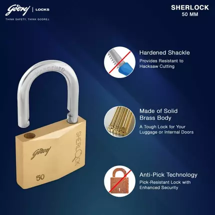 This lock is suitable for both residential and commercial doors, offering durability, enhanced security, and convenience with its double locking mechanism and three keys. Features : Type: Padlock; Material: Brass Mechanism: High-precision brass pin tumbler mechanism Technology: Anti-pick technology to enhance security Rust-resistant: Rust-resistant components ensure smooth operation for years Hardened shackle: The material with double locking mechanism is toughened to resist the strongest of attacks Secure: Shackle gets engaged at both ends for greater security Specifications: Brand: Godrej Special Feature: Easy to Install Lock Type: Key Lock Item Dimensions LxWxH: 7 x 5 x 1.5 Centimeters Material: Brass