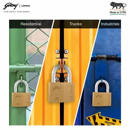 Features Type: Padlock; Material: Brass Mechanism: High-precision brass pin tumbler mechanism Technology: Anti-pick technology to enhance security Rust-resistant: Rust-resistant components ensure smooth operation for years Hardened shackle: The material with double locking mechanism is toughened to resist the strongest of attacks Security: Shackle gets engaged at both ends for greater security Specifications: Brand: Godrej Special Feature: Easy to Install Lock Type: Key Lock Item Dimensions LxWxH: 10.2 x 7 x 2 Centimeters Material: Brass