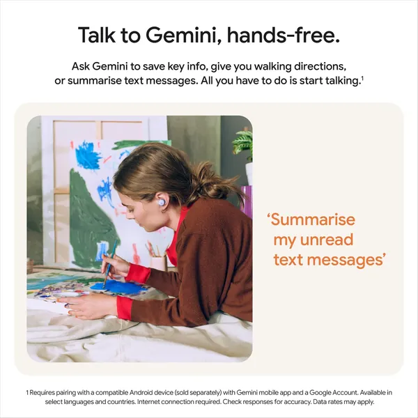 Have Gemini summarise, save key info and reply to incoming text messages just by speaking to your buds, so you can stay connected to your contacts without taking out your phone.