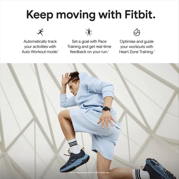 2 Some features may require Fitbit app. Accuracy of heart rate tracking may be affected by physiology, location of device and your movements and activity.