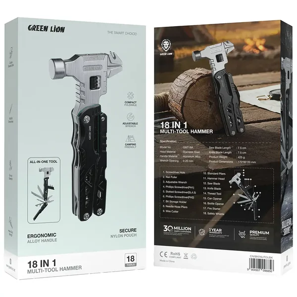 Green Lion 18-In-1 Multi-Tool Hammer - Black