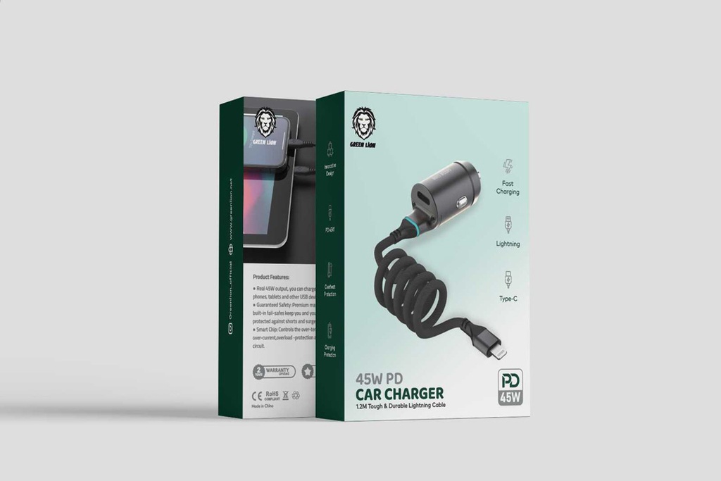 Green Lion 45W PD Car Charger , Type-C Port & Lightning Cable