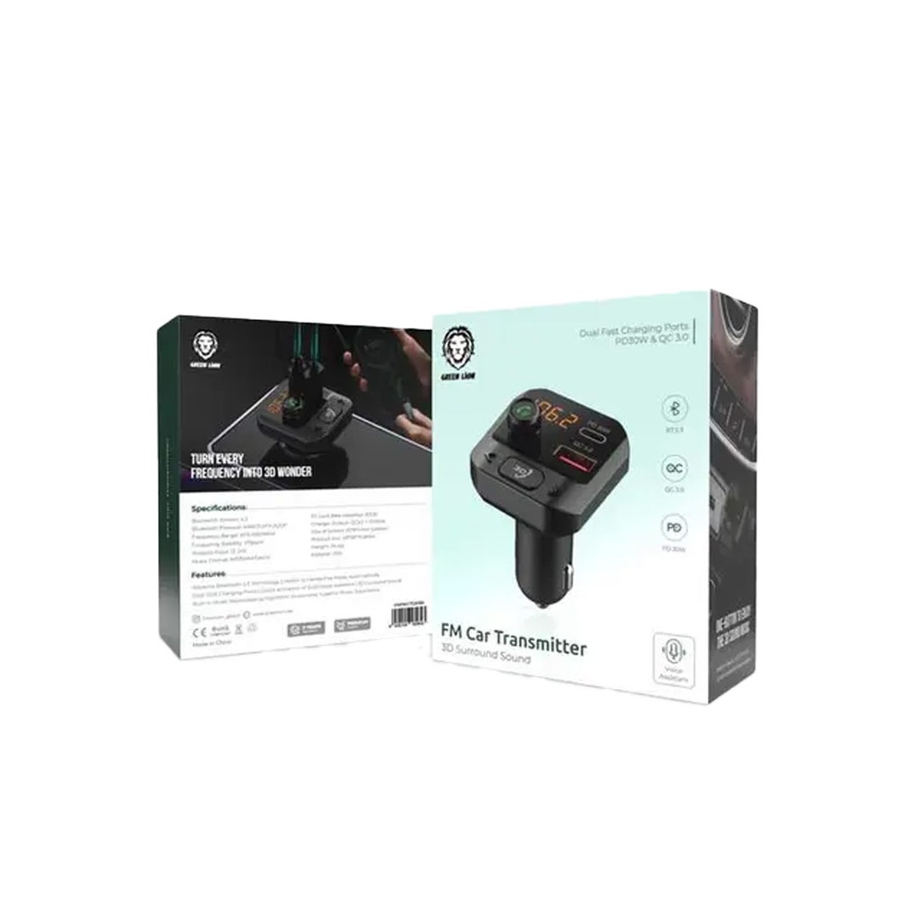 Green Lion Car FM Transmitter with 3D Surround Sound PD 30W & QC 3.0 - Black
