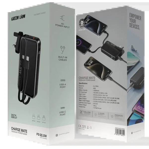 Green Lion Charge Mate Power Bank 10000 mAh PD 22.5W - Black