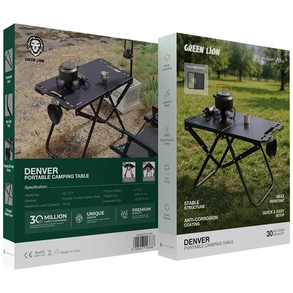The Green Lion Denver Portable Camping Table is a combination of practicality and durability for outdoor activities. This table, whether you go camping, on a picnic, or hiking, still provides a stable structure with a heat-resistant surface that is able to endure the torture of outdoor cooking. The anti-corrosion coating allows the table to stand through the weathering of the elements, which is why it is perfect for long-term use. Its load capacity of 30 kg makes it possible to support your gear and equipment without problems. The table is quick and easy to set up, and its foldable design helps in the storage and carrying, which means it is possible for you to take it anywhere that you go. This table is the right camping gear that gives you a reliable and tough surface for all your outdoor activities.