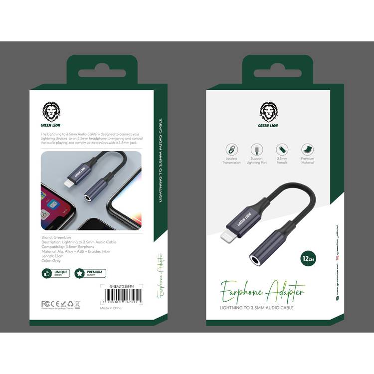 Green Lion Earphone Adapter Lightning to 3.5mm Audio Cable (12cm) - Gray