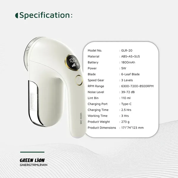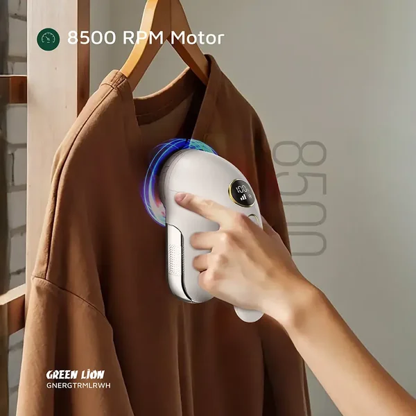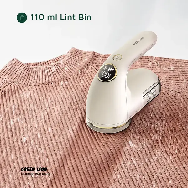 The Green Lion ErgoTrim Digital Fabric Remover is practically designed to keep clothes looking fresh. It is made of ABS, AS, and SUS with a 6-leaf blade that easily eliminates lint, fuzz, and pilling from the fabrics. It comes with a 1800mAh battery, enabling it to be used for 3 hours continuously on a full charge. The device has 3-speed settings from 6300 to 8500 RPM, allowing you to alter the power as per your fabric needs. The ergonomic handle ensures comfort while operating; the honeycomb mesh cover protects the fabric. Emptying the 110mL lint bin is simple, while the digital display keeps you informed about battery levels and settings. Thanks to Type-C charging and a charging time of 2.5 hours, it's travel-friendly and ready upon demand. Great for prompt and fuss-free fabric care.