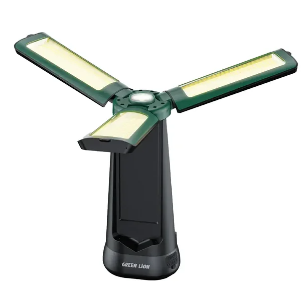 Green Lion Explorer Tripod Camping Light - Green is an exceptional source of outdoor illumination that combines the factors of power, multifunctionality, and ease of use. The light is made from PC, ABS, and an aluminum alloy, thus it is strong and at the same time lightweight, making it perfect for any outdoor activity. The 9000mAh battery can be used for 7-25 hours, depending on the brightness mode selected. The light covers a wide area with its 4500lm brightness and 27W power for the main light. The good quality light comes from the combination of the LED spotlight and the 301 lamp beads. The light offers five different colors: white, warm, mixed, P50, and single panel, and it has a color temperature range of 3000K-6500K, which makes it versatile for lighting. The height can be adjusted from 50cm to 180cm with the telescopic design, which is very useful for getting the right height to light up a large area. In addition, there is a built-in hanging hook for simple installation, a digital display, and a solar charging option. For your convenience, you can also use it as an emergency power bank with the USB-A output.