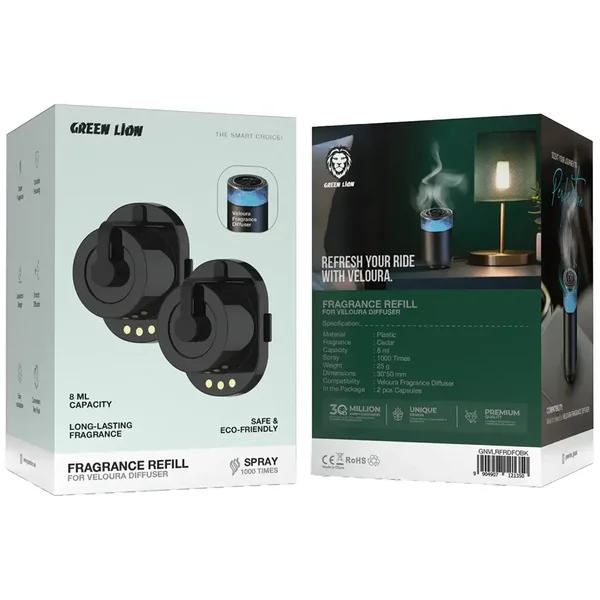 The Green Lion Fragrance Refill for Veloura Diffuser is the choice that will make your space smell nice and refreshing, whether you are at home, in a hotel, or even in the car. With the Veloura Fragrance Diffuser, a smooth and even diffusion of your selected fragrance is the perk. This refill is natural and non-toxic, and it is available in different beautiful scents like cedar, lavender, ocean breeze, and smooth citrus. The 10mL refill can last for a maximum of 30 days, giving freshness for a long time. The spray technology is responsible for the precise distribution of the fragrance, resulting in a perfect, aromatic atmosphere. The Green Lion Fragrance Refill is an excellent choice for those who want to freshen up their vehicle or make a soothing space at home, as it gives the best-quality scent experience while being eco-friendly and sustainable. A great design for those who love a natural and steady fragrance to improve their environment!