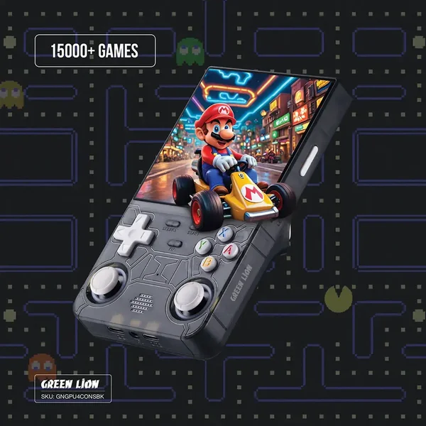 If the magazine may be considered situated anywhere between over-the-top and classy, formally across all the aisles of upscale) downsampled-floor offer areas for purchases, using, and entertainment set on sale. Situated midway between somewhat and inexpensive, the Green Lion GP Ultra 4 Gaming Console (black) provides a great gaming experience in its smallest form, something that one should be able to afford. Grip the handle tightly and have many fun games in it, comprising quicker and smoother games due to its 1.5GHz Cortex-A35 CPU, Mali-G31 MP2 GPU, and a 720 x 720 IPS HD screen. The 1GB RAM and 8GB eMMC storage provide faster performance, whereas the 64GB TF card (expandable up to 256GB) offers more space for your enjoyment of games. With a 3000mAh battery, you will get 5-7 hours of nonstop fun on a single charge; 1 hour charging time makes it convenient, and the Type-C charging port makes recharging that fast. It also supports gamepad connection, HD-MI TV output, and has an 8-watt built-in speaker for extra loudness. Whether you are pounding it on a bus, tram, or anywhere else en route, the Green Lion GP Ultra 4 is the ultimate combination of performance, portability, and ease of use.