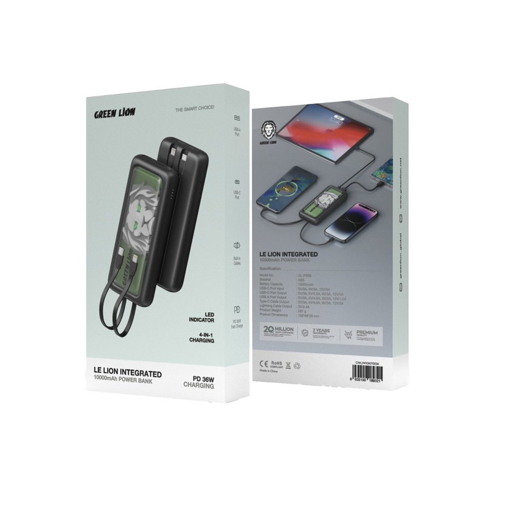 Green Lion Le Lion Integrated 10000mAh Power Bank - Black