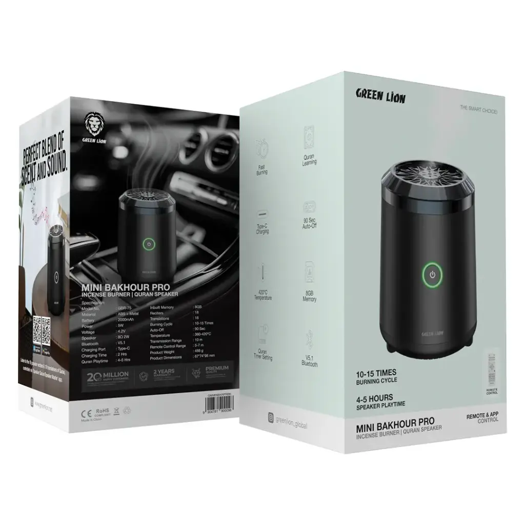 Green Lion Mini Bakhour Pro With Quran Speaker - Black
