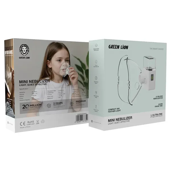 The Green Lion Mini Nebulizer can truly be said to be the perfect device for easy, going-on-ex-theatre-and-interaction-with-inhalation-therapy. Another compact minor device was created, weighing light with the ultrasonic vibration technology for further relieving inhalation mist delivery. It can be used for 40 minutes on a single charge, thus allowing at least two treatments, several sessions, or more. Sound pollution-wise is at a very low level, making it very comfortable to use, both at home and away. This type of nebulizer is well designed for greater efficiency, which ensures ease of use and helps against bronchial problems by converting liquid medication into a fine mist that is easy to breathe in. The smaller-scale size can serve adults and children alike, providing therapy on the go. Made up of plastic, the body is rugged and made to last through many uses for dependable performance whenever needed.