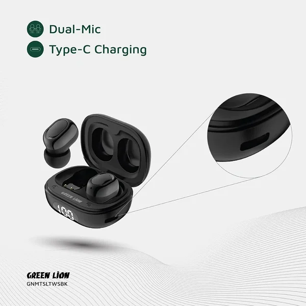 The Green Lion Mittersill True Wireless Earbuds give you a perfect sound thanks to 8mm speakers, a frequency range between 20Hz-20kHz, and 105±3 dB sensitivity. It can easily connect to any device within a 10-meter transmission range by means of Bluetooth V5.4, whereas sweat and rain cannot harm these earbuds due to an IPX5 waterproof rating, making it a prime candidate for workouts. Onboard, the earbuds have a 30mAh battery, whereas the charging case holds 200mAh, giving it around 6 hours of playtime. Dual mic ENC technology allows for superior calls and good background noise cancellation. Fast charging is assured via Type-C charging with a battery display, allowing you to keep track of your remaining power level. For further ease and comfort, the earbuds come with a strap that makes carrying a joy and are designed to sit perfectly in your ears for long listening sessions.