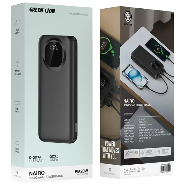 Green Lion Nairo 10000mAh Power Bank PD 20W - Black