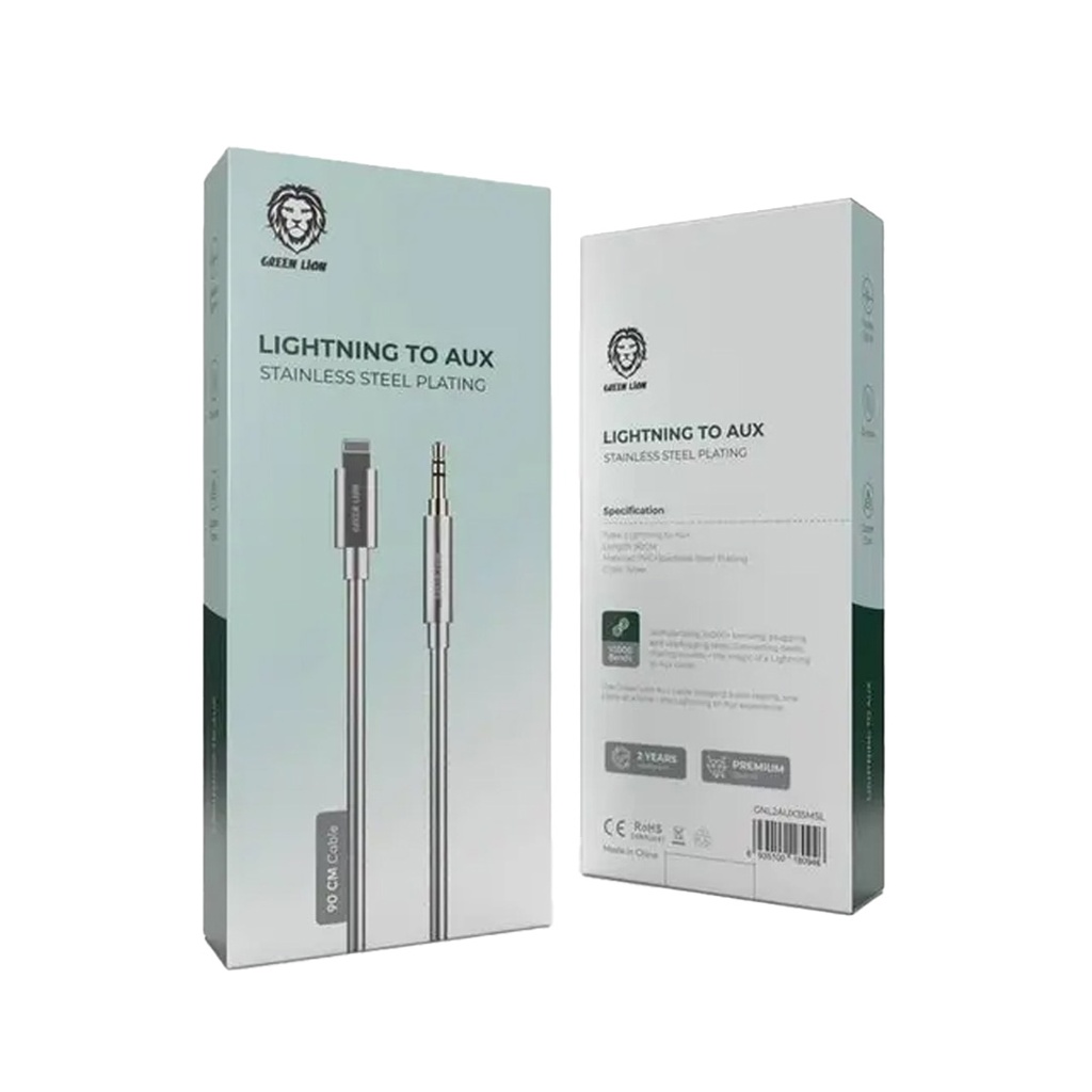Green Lion Non-MFi Lightning to AUX 3.5mm Stainless Steel Plating Cable 90cm- Silver