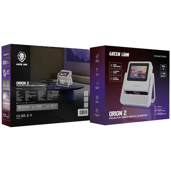 The Green Lion Orion 2 Projector turns your home into a theater with 4K support and Android 12 integration, providing a smooth and versatile multimedia experience. It has 720P HD resolution and 200 ANSI lumens brightness, which results in clear and bright images even in different light settings. You are allowed to project a 250” image, which gives you a feeling of watching a movie, and the 180° adjustable rotation lets you put it anywhere you want. With auto focus and keystone correction, alignment becomes very fast and easy, thus guaranteeing perfect viewing at all times. It allows for the use of screen mirroring as well as a multitude of other multimedia options, which makes it equally suitable for entertainment as well as presentations. The Porodo Orion 2 Projector is a real winner when it comes to performance and comfort, be it for a movie session, gaming, or an office presentation.