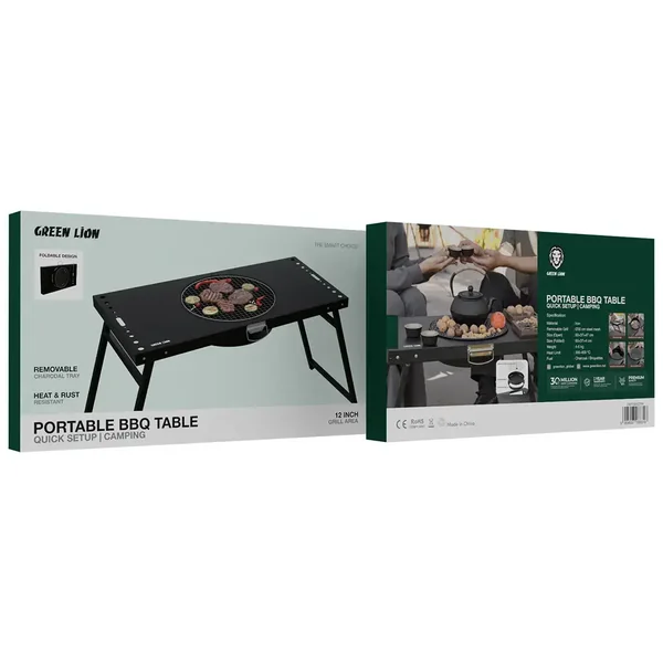 The Black Green Lion Portable BBQ Camping Table is an outdoor cooking partner that you can't do without. It is made of solid iron and comes with a detachable mesh grill of 30cm diameter that allows you to grill your favorite food with no hassle at all. Once the table is fully extended, it has the dimensions of 60×37×47cm; when it is folded, it will be only 60×37×4cm which is compact enough to store and carry effortlessly. The temperature limitation of 300-400°C results in very fast cooking whether you use either charcoal or briquettes as the heating source. The grill area of 12 inches is very generous and you can cook several items simultaneously. This portable camping BBQ table is made of heat and rust-resistant materials, has an easy installation process, and has a removable ash pan too. It offers comfortable use and durability at the same time. Besides, the light and foldable design together with the carrying bag makes it very convenient to be brought anywhere; besides, there are heat vents that will ensure proper air circulation. Cleaning is a breeze thus your BBQ fun is made hassle-free and pleasant.