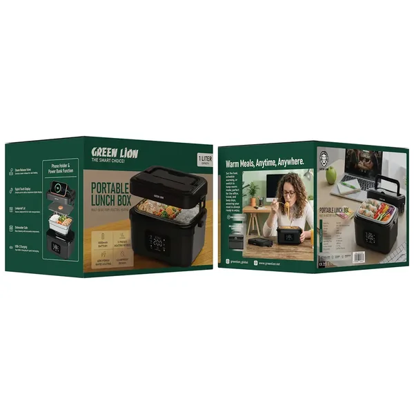 The Green Lion Portable Lunch Box with Built-In Battery & Electric Heating - Black is the ideal solution for those who want to enjoy warm meals at any time. The system uses its built-in battery with electric heating to heat your food until you complete your meal. The leakproof design ensures your meals stay secure while being transported, preventing any spills. The lunch box provides five preset heating modes, which allow you to easily reheat different types of food during your busy schedule. The device supports USB-C charging, which lets you recharge its 8000mAh battery at high speed to achieve 70 minutes of operation. The device contains a steam release valve, which protects the heating process. The Green Lion Portable Lunch Box functions as a safe and practical food-grade container that people can use at work, while traveling, or during their daily routines. Enjoy hot meals wherever you go!