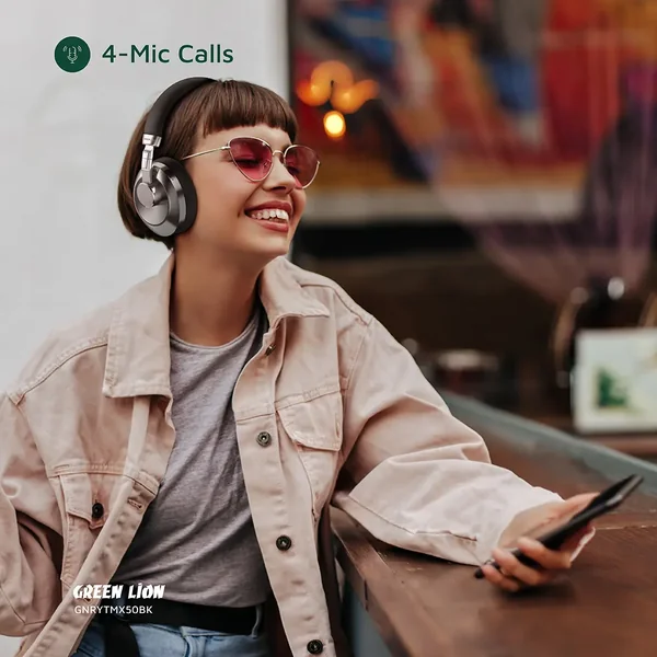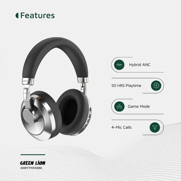The Green Lion Rhythm X50 ANC Wireless Headphone exhibits a powerful sound system with advanced features and extraordinary audio immersion. Constructed with high-quality ABS and metal, the headphones guarantee durability and comfort. The 40mm drivers mature the sound to perfection, while the 350mAh battery serves a utilization period of 30-50 hours and 180 standby hours. Bluetooth V6.0 and 10m transmission range over connectivity: simple and easy. Noise cancellation technology is enabled in ANC mode to reduce the ambient noise by 30dB to provide an all-quiet atmosphere to listen to, whereas in-game mode, ultra-low latency is offered for gaming. They are also foldable for ease of carrying, type-C charging provides very fast charging, and they come with cushioned ear pads for comfort. Voice assistant support, 4-mic calls, and transparency mode make this pair of headphones good for recreation or professional use.