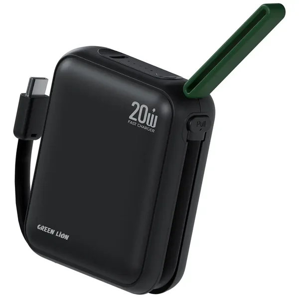 Black Green Lion Soho 10000mAh Power Bank is the one and only portable charging solution that combines power, elegance, and functionality all together. A battery of 10000mAh is enough to keep your devices charged throughout the day. With the help of PD fast charging of 20W, and the wireless output of 15W, it is possible to charge devices at a rate that is about four times faster than the standard power output, and the detachable Type-C cable works as a universal charger for different devices. The power bank has an ultra-slim design along with a built-in stand that allows easy carrying, and thus, you would barely feel it in your luggage, making it ideal for traveling or daily usage. In case your iPhone or any other device is MagSafe compatible, then it can be safely charged through this power bank. The battery LED indicator will always let you know about the charging status, while the easy-carry lanyard will improve the portability and allow you to take it with you wherever you go. Anyone who travels a lot will consider the Green Lion Soho Power Bank an ideal companion since it provides not only a reliable but also a fast power supply.