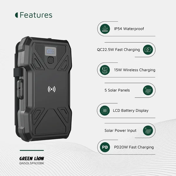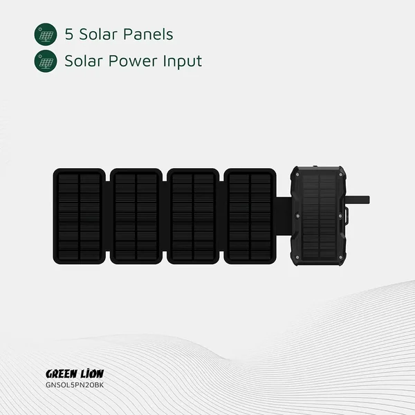 The Green Lion Solar 5-Panel 20000mAh Power Bank PD20W is a
