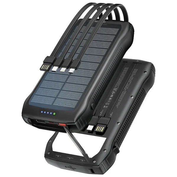 The Green Lion Solar Force 20000mAh Power Bank is nothing less than the best power source in an adventurous or traveling scenario where users are aiming for a complete off-the-grid lifestyle. It is resistant to environmental factors and includes a robust construction of ABS, PC, and silicone that ensures it not only survives but also looks as good as new after the adventure. The power bank's most remarkable feature is the integrated monocrystalline solar panel, which gives you the power of the sun to keep your devices charged even when the nearest socket is miles away. This power bank is not only extremely tough but also very practical and versatile. It has built-in cables offering support for Lightning, USB-C, and Micro-USB devices, so extra cords do not have to be carried around. Its fast charging support of PD 20W and Quick Charge 3.0 means your gadgets are quickly charged up. Further, the device turns into a highly effective emergency gadget, with a very powerful 360-lumen flashlight equipped with SOS and strobe modes to keep you safe and lighted during the night.