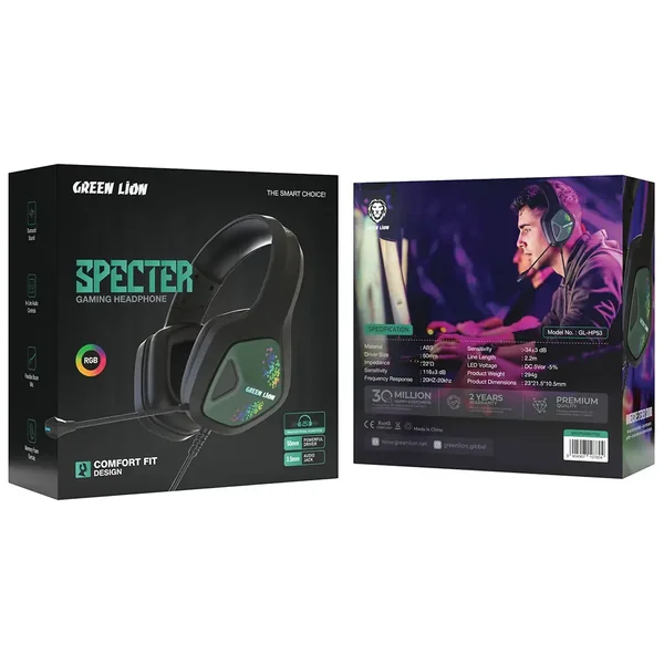The Green Lion Specter Gaming Headphones give a complete, comfortable, and immersive gaming experience. The headset with stereo sound and 50mm drivers provides clear and loud audio, which lets the player completely absorb themselves in his/her game. The comfy fit structure gives the user the best comfort that lasts for a long time, making it perfect for continuous gaming. The detachable mic lets you chat with your colleagues easily and thus makes the session more interactive. The LED light design makes the headphones very attractive and dynamic. The 2.2m long cable provides the user with enough freedom of movement. The Specter Gaming Headphones deliver not only great sound quality but also comfort for all your needs, whether you are in the middle of a highly charged game or just listening to music.