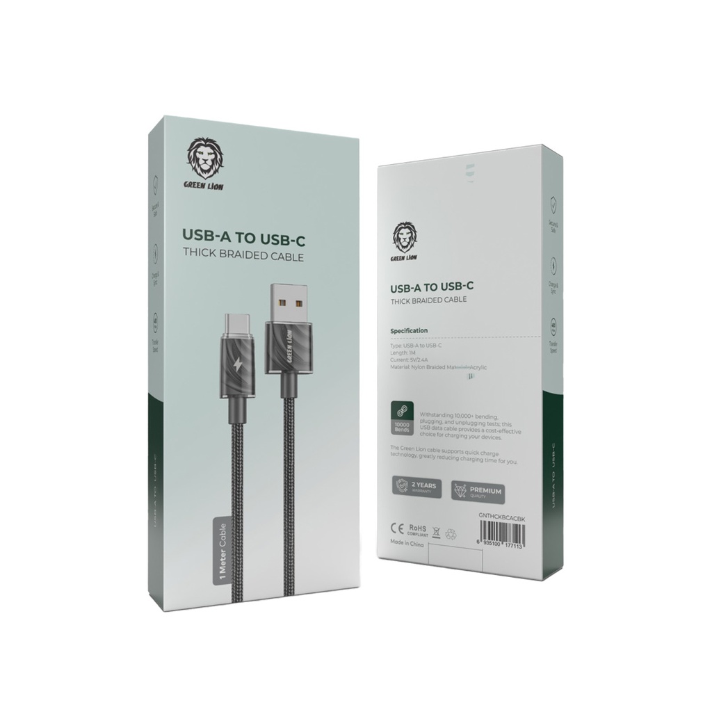 Green Lion USB-A to USB-C Thick Braided Cable 1M - Black