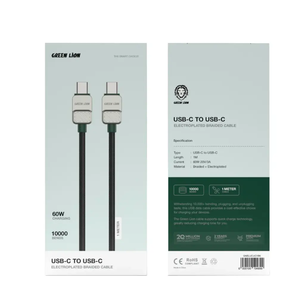 Green Lion USB-C to USB-C Electroplated Braided Cable - Black + Dark Green