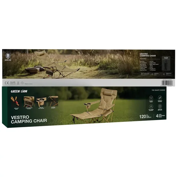 The Green Lion Vestro Camping Chair is comfort and convenience combined, no less. It allows you to recline in 4 various angles, and paired with the footrest that you can easily remove, it will soon turn out to be your favorite spot for taking a break. The non-slip bottom will provide you with support no matter whether you are in a tent, on a trek, or soaking up the rays at the seaside, and the beverage holder will let you sip your drink without having to get up. Being that the side pocket is for storage, it will keep your most needed items right next to you. The chair has a carbon steel frame and 600D Oxford fabric, thus promising comfort and durability for many years, even if the weather is usually tough. In addition, the chair is able to support a weight of 120kg, hence giving secure support. The lightweight design makes it very easy for you to carry it wherever you want, and that is why it is a perfect companion for all your outdoor adventures.