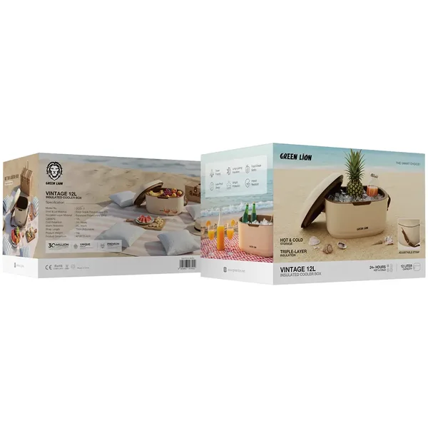 Introducing the Green Lion Vintage 12L Insulated Cooler Box, a Beige color, and a reliable partner in outdoor activities that comes with the benefit of high temperature control for both hot and cold storage lasting for long hours. To be precise, it is made from food-grade polypropylene (PP) for the shell and lid, and for the insulation layer, expanded polystyrene (EPS), thereby making this cooler box a great source of safety for your food and at the same time keeping it at the desired temperature for over 24 hours. The cooler has a 12L capacity and therefore can hold a lot of food, like drinks, snacks, or meals. The cooler box is designed with triple-layer insulation, which is perfect for cold and warm retention, so it can be used for picnics, camping, or beach trips. The leak-proof design, along with airtight protection, not only secures the contents but also keeps them fresh. The impact-resistant design guarantees indoor or outdoor use, whereas the adjustable 72cm strap makes it very convenient to carry. Green Lion Vintage Cooler Box will not be a hard-core and travel-unfriendly solution for you, whether your purpose is to keep things hot or cold.
