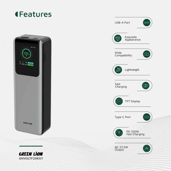 Green Lion Voltura 20000mAh Power Bank PD100W -Grey