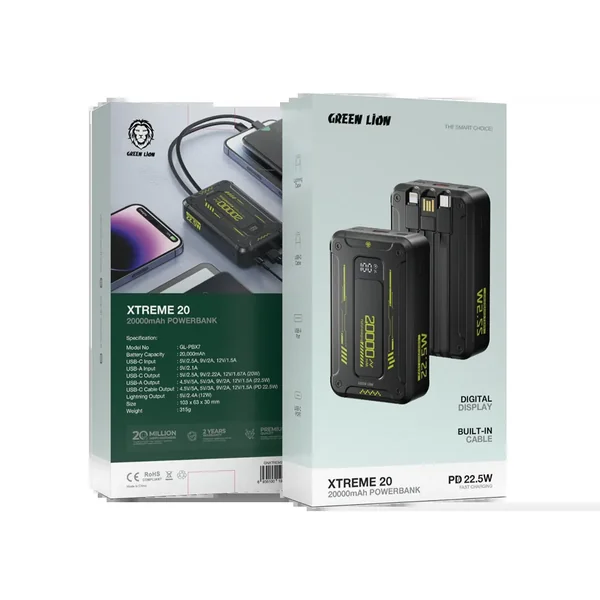 Green Lion Xtreme 20 Power Bank 20000mAh PD 22.5W - Black